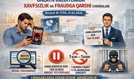 Onlayn kredit olishda firibgarlikka uchragan fuqarolardan kreditni undirish to‘xatiladi