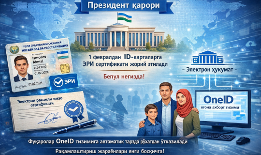 Fuqarolarning yangi ID-kartalari OneID tizimiga avtomatik tarzda ulanadi.
